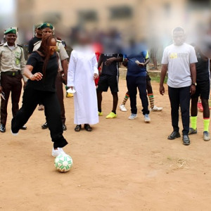 Four teams nicknamed—Real Madrid, Arsenal, Barcelona, and Chelsea—are competing for this year’s championship. The opening ceremony was filled with energy as the teams prepared for an exciting competition. LGCF’s Executive Director, Mrs. Kanayo Olisa Metuh, was warmly received by DC Kelvin Iloanfonsi, In-Charge MSCC Kuje. In her speech, Mrs. Kanayo praised the inmates for their participation and underscored the importance of sports in their rehabilitation, calling for continued support and improved resources to improve their skills and reintegration into society.